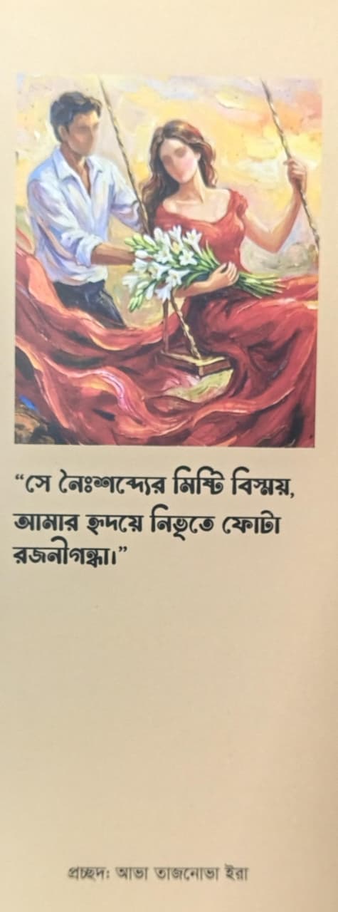 রজনীগন্ধার শুভ্রতা আর সুবাস যেমন মনকে শান্ত করে, ফারহানা নিঝুম-এর এই বইটি ঠিক তেমনি আপনার হৃদয়ে এক প্রশান্তির পরশ বুলিয়ে দেবে। "হৃদয়ের রজনীগন্ধা" কেবল একটি প্রেমের গল্প নয়, এটি আত্মিক টান আর অনুভূতির এক গভীর কাব্য। 📖 হৃদয়ের অব্যক্ত কথাগুলো যখন পাতায় পাতায় ফুটে ওঠে, তখন তা হয়ে ওঠে জীবনের প্রতিচ্ছবি।