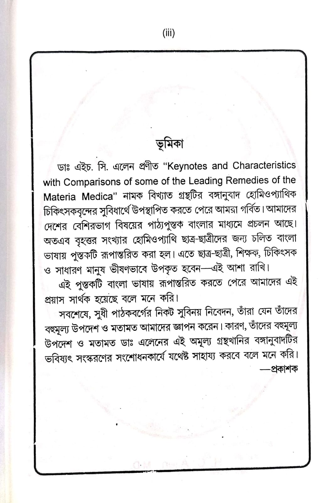 বইটি অত্যন্ত নিখুঁতভাবে বাংলা অনুবাদ করেছেন প্রখ্যাত হোমিওপ্যাথি বিশেষজ্ঞ অধ্যাপক ডা. কে. কে. চ্যাটার্জী। ✍️